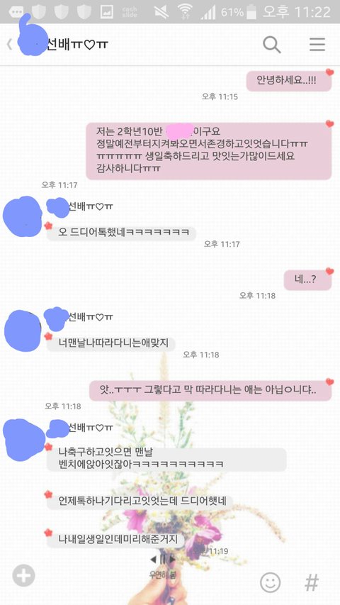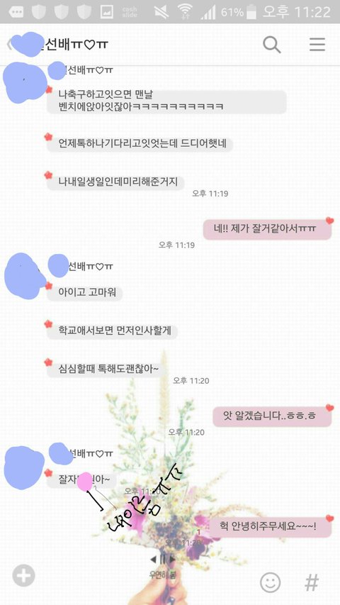 와 얘들아 나지금너무떨려 정말... 방금ㅇ좋아하는선배랑톡하고왓어ㅠㅠㅠㅠㅠㅠㅠㅠ