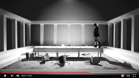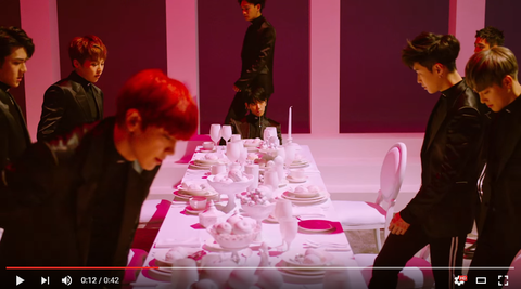 마지막 탁자 위 접시와 그릇들이 깨지는 장면 후 백현이가 레이가 앉았던 식탁 위를 밟고있는 장면이 나옴. 여기서 둘의 갈등이 더 심화되고 있다는 걸 볼 수 있음.