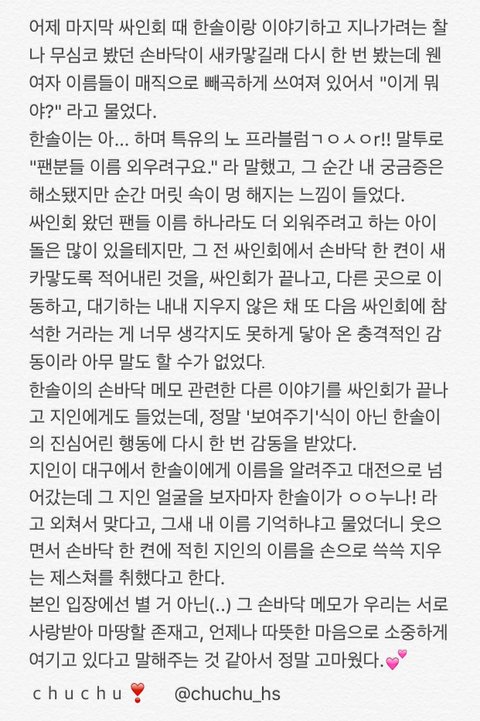 팬싸인회에 온 모든 팬들의 이름을 기억하려고 손바닥에 써 놓는다는 버논이ㅜㅜㅜㅜㅜㅜ