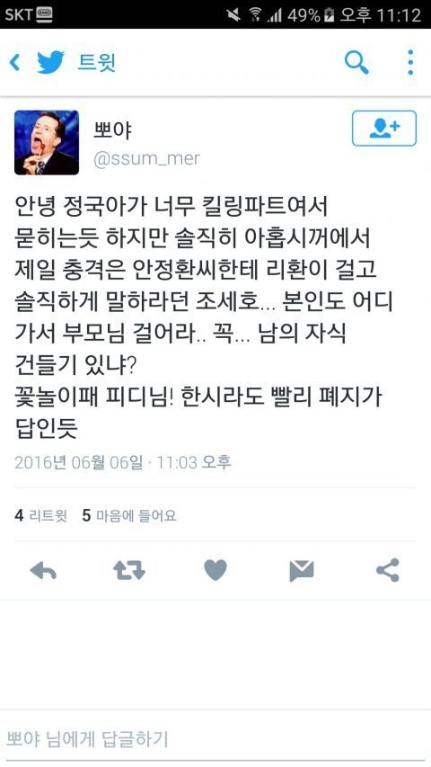 방탄소년단 정국분이랑 김민석분한테도 너무하긴 했는데
