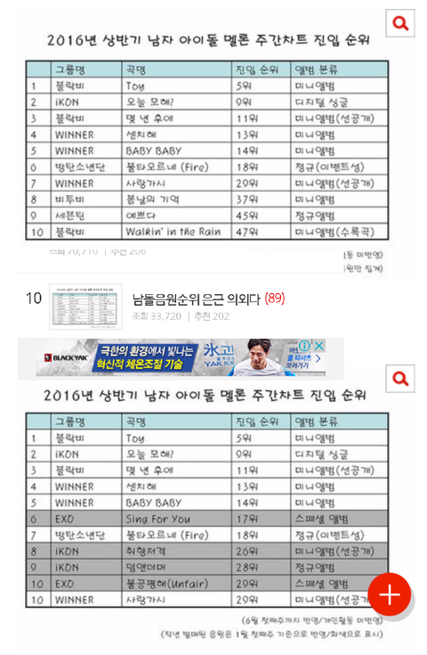 대충 이런 식의 내용 사진에서 보면 알겠지만 방탄 아이콘이 좀 위의 순위임.