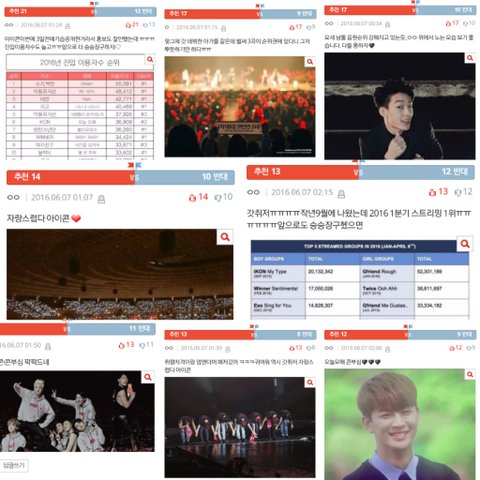 베플도 그렇고 유독 방탄과 아이콘의 댓글에만 반대수가 넘쳐남. 특히 찬반대결은 그냥 싹다 아이콘임ㅋㅋㅋㅋㅋ내가 캡쳐한것 말고도 예비베플보면 그냥 반대가 많음.