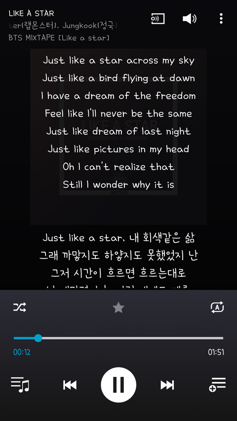 남준이랑 정국이의 'LIKE A STAR' 라는 곡이야 !♡