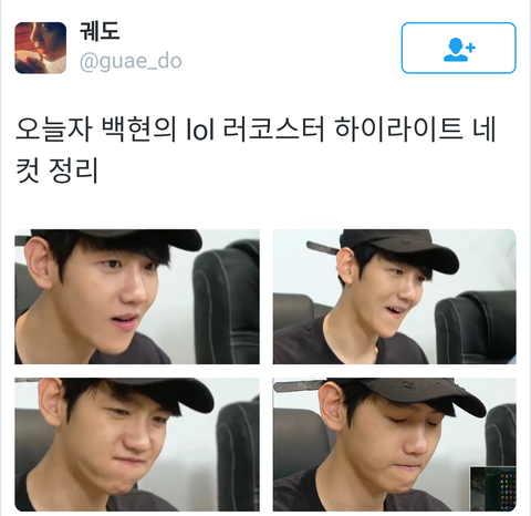 오늘자 백현의 lol 러코스터 하이라이트 네컷 정리