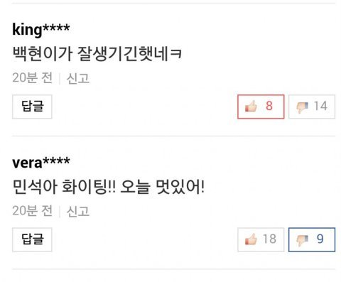 백현칭찬글에는 추천누르고 시우민 칭찬글에는 반대누른 백현악개