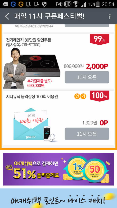Ok캐쉬백앱설치해서 더 받는거있움
