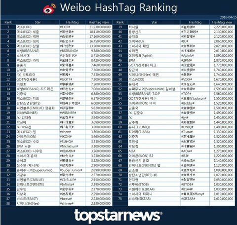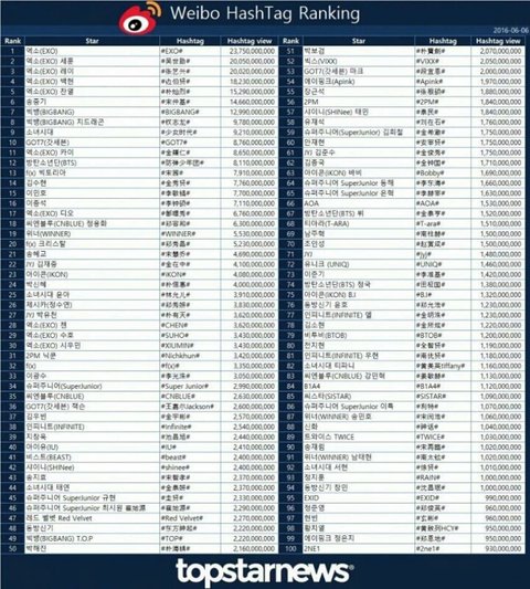 웨이보 해시태그 순위