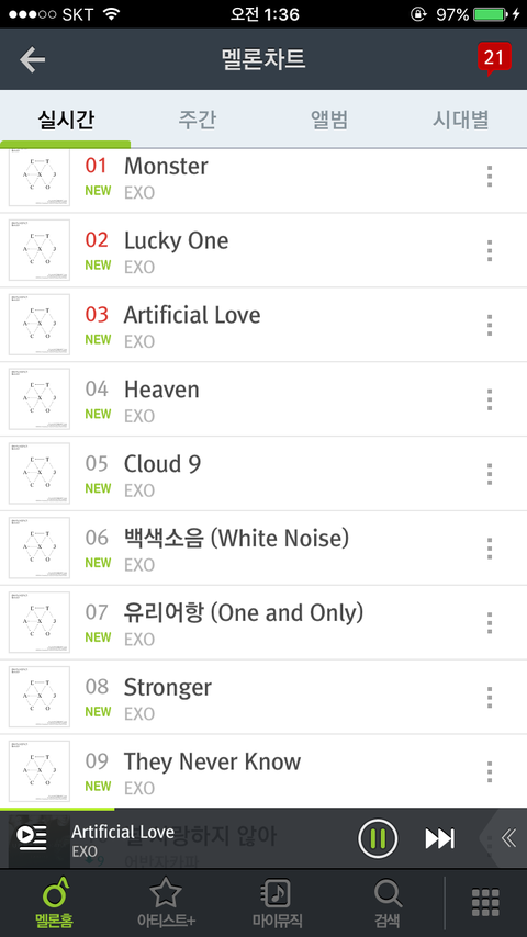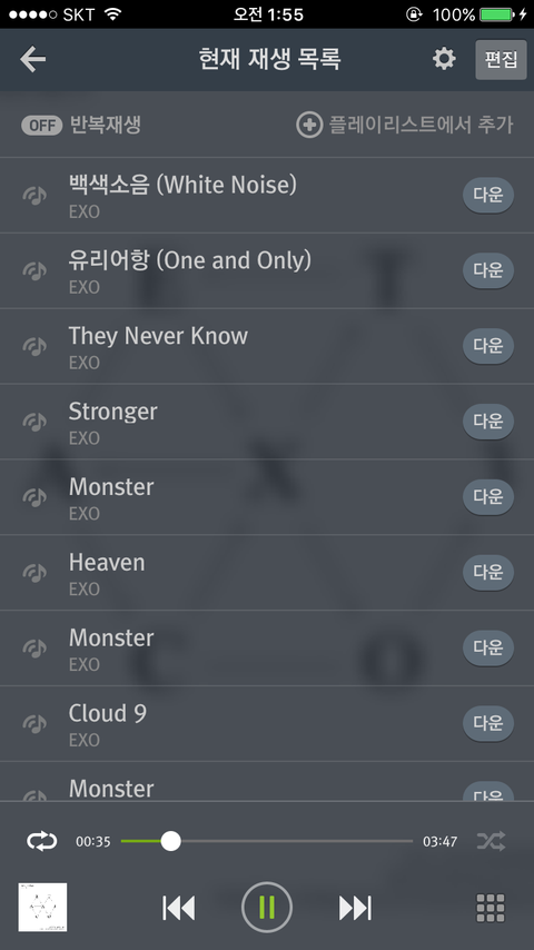 순서는 상관없지만 같은곡이 연속으로 있으면 반영안된데 그리고 스밍 돌릴때 현재재생목록 봤을때 옆에 다운리라는 글씨가 있어야돼!!