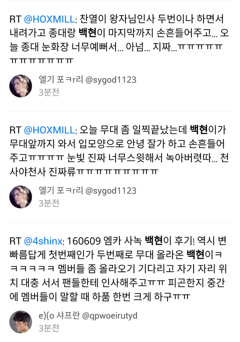 엠카 트윗 백현이
