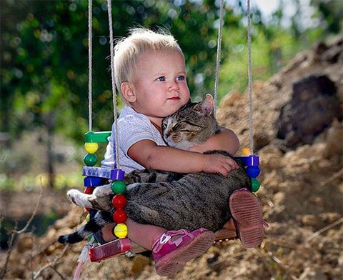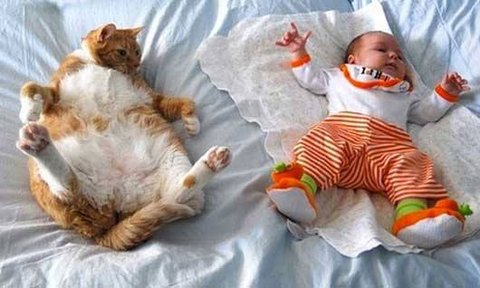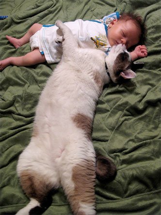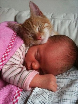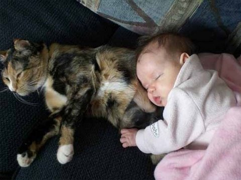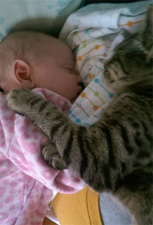 아기 앞에선 달라지는 냥이들