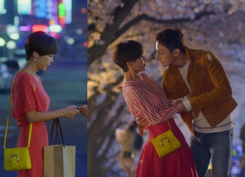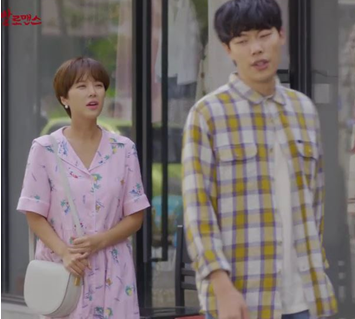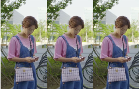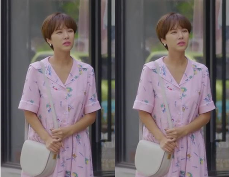 황정음도 핑크 셔츠 원피스에 쿠론 반달백