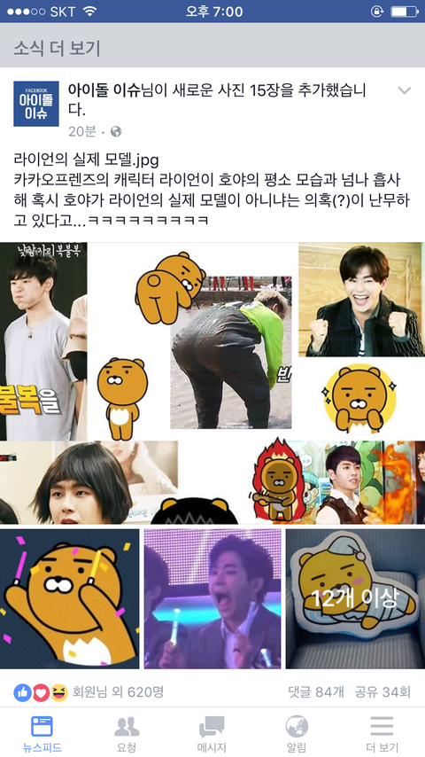 떳구만ㅋㅋㅋㅋㅋㅋ호야가 라이언 판박이라는거ㅋㅋㅋㅋ가서 봐봐 못봤던 싱크사진도 있더라ㅋㅋ개존귀