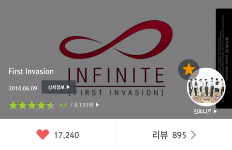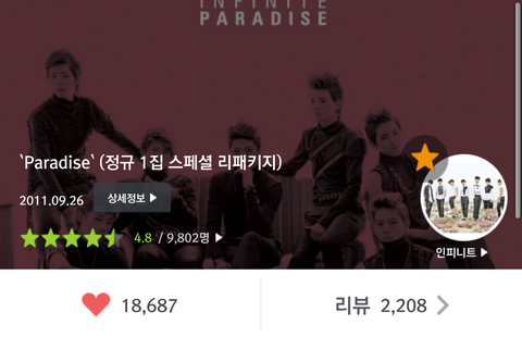 인피니트 앨범 멜론 평점 모음이었습니다ㅎㅎ