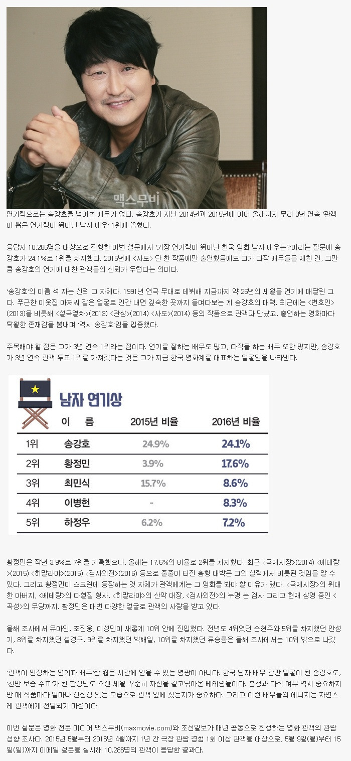 관객이 뽑은 연기력 순위