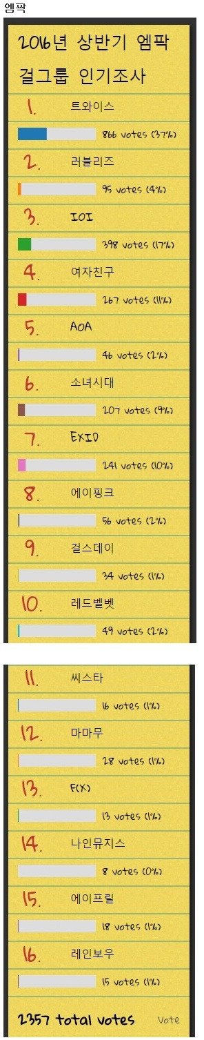남자들이 뽑은 가장 예쁜 걸그룹 1위