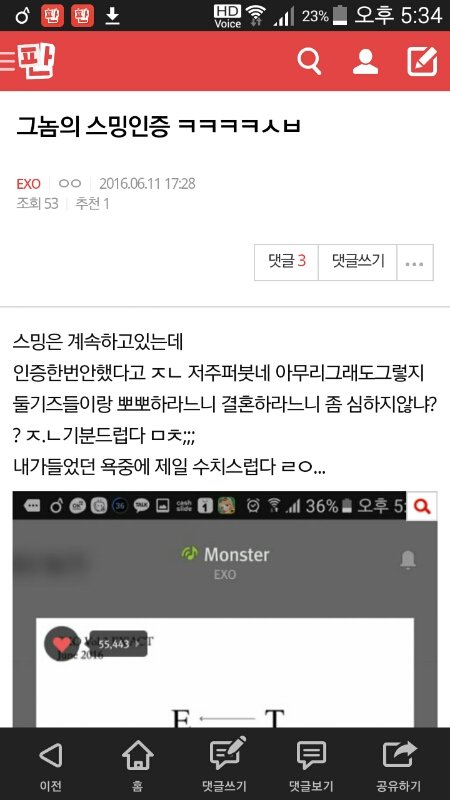지가 처음에 스밍인증안올려서 욕들은건데 왜지가 기분나쁘데