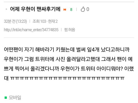 그리고 팬들이 안좋게 말하면 고나리함(남친이 여친 고나리하듯이)개이득도 뜻이 뭔지 모르는데 욕 아니냐고, 이쁜 말 쓰라고개좋다할때의 앞에 '개' 쓰지 말고 'ㄹㅇ'이라고 하라고 함