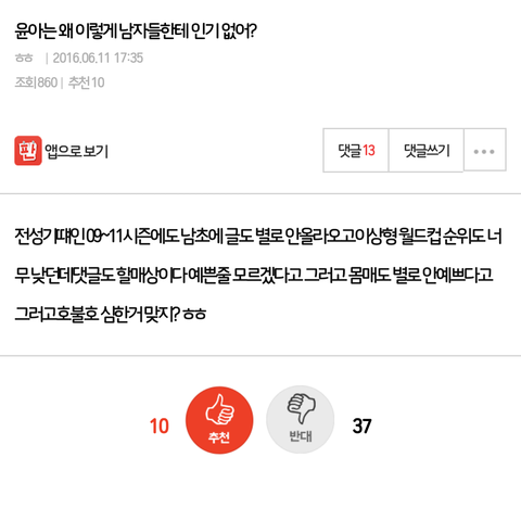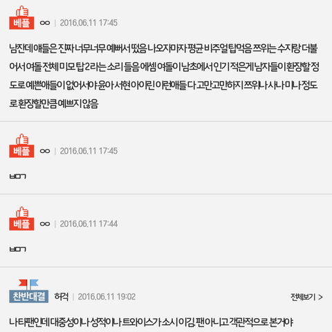 한사람이 주말마다 베플조작하는건데 솔직히 니네도 알면서 모른척하지마라