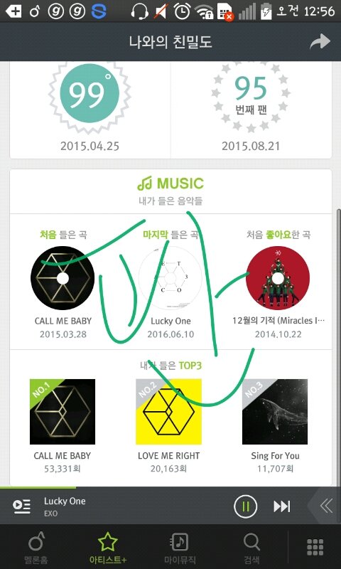 많이 들은곡 왜 탑3만 보게해놨냐....내 스밍량 궁금하다고... ㅈㄴ적어도 탑텐은 볼수있게 해줘야지...아 진심 몬스터 스밍량 보려면 최소 2달은 해야 나올듯.. 팬순위 올려야돼서 새계정 만들기는 싫고 하 멜롱...탑순위좀 더 볼수있게해줬음 좋겠다