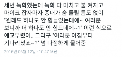 사녹후기에 종대 많이 힘들었나봐