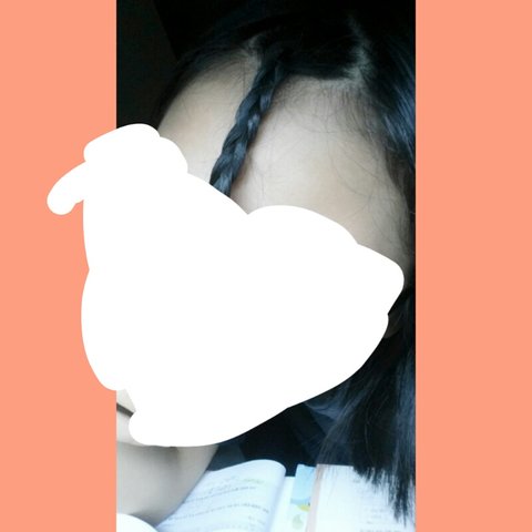 저 밑에 깔려있는 책들로 보아 시험공부를 하다 앞머리가 거슬려 어떻게 할까 생각해보니 아..! 땋아버리면 되겠구나...! 라는 생각을 하게 되어 공부를 그만두고 앞머리를 땋고 땋은 걸 보니 음.. 좀 잘했는데? 라는 생각이 들어 핸드폰을 꺼내 셀카를 찍고 찍은 것을 쭉 보다가 맘에 드는 사진을 발견하여 곱게 땋은 앞머리와 함께 밑에 깔려있는 책들로 나 공부한다 라는 것을 간접적으로 드러낸 것이다.