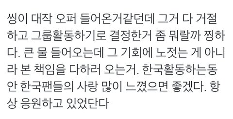 한국활동하는게 당연한거아님ㅋㅋㅋㅋ?지개인활동이 먼저가 아니고 그룹이먼저지ㅅㅂ 지가 엑소에 있으면 엑소활동이 먼저지 지가먼저냐?작년부터 빡치게한다ㄹㅇ
