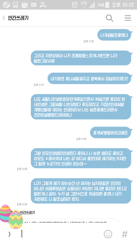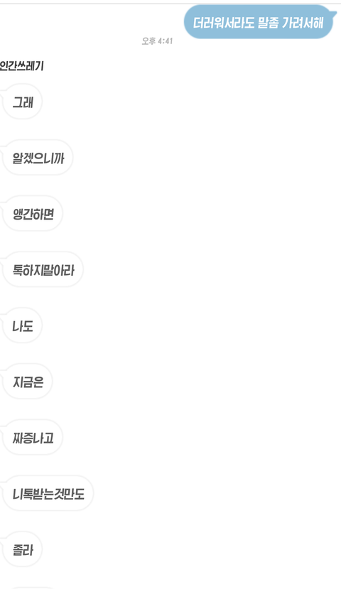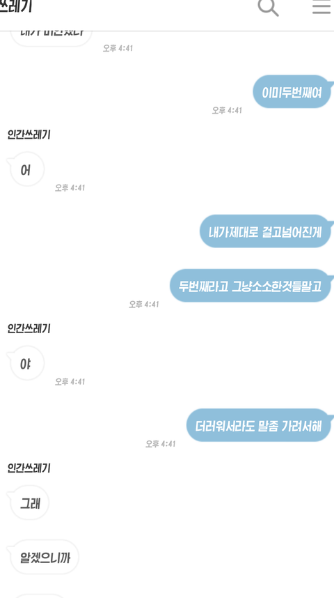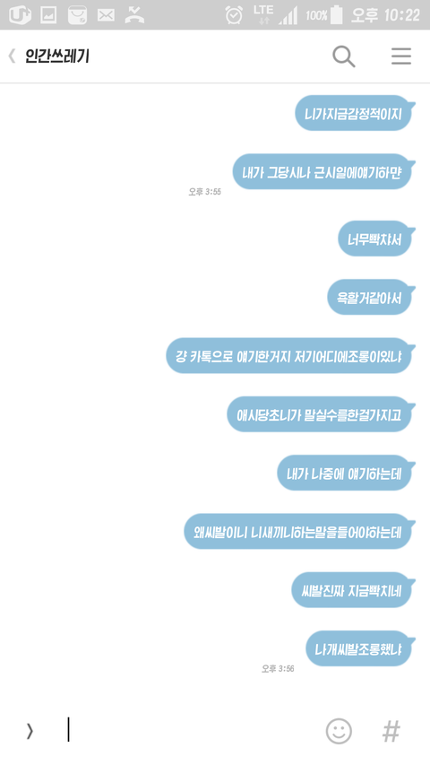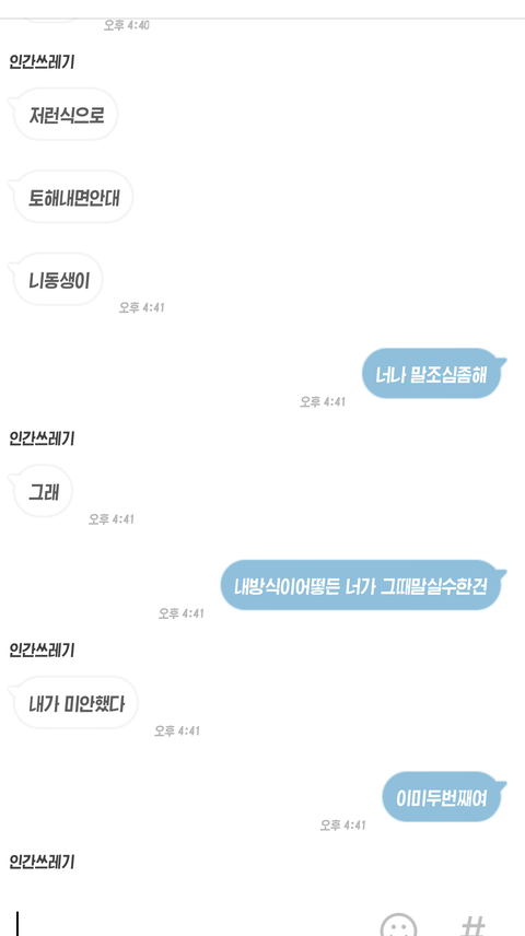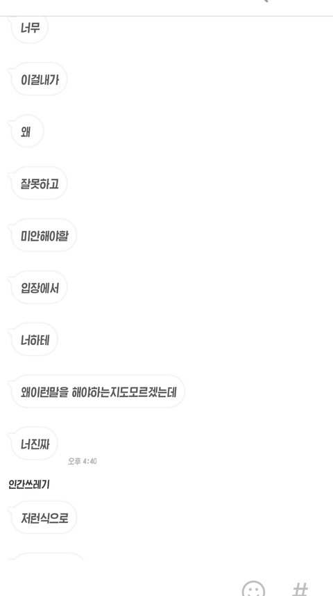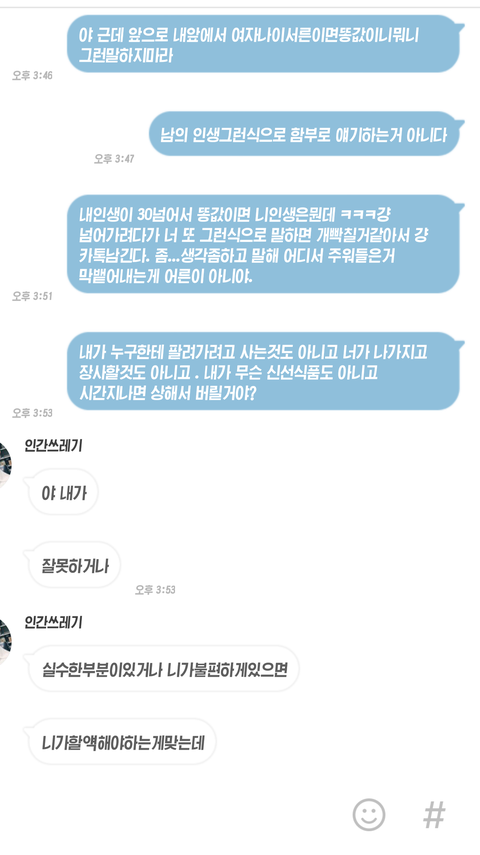 저는 일쥬일이나 계속 들끓는뷴노를 참으면서 지냈고 목요일 오후 그냥 욕없이 제 입장을 카톡우로 보냈는데요.