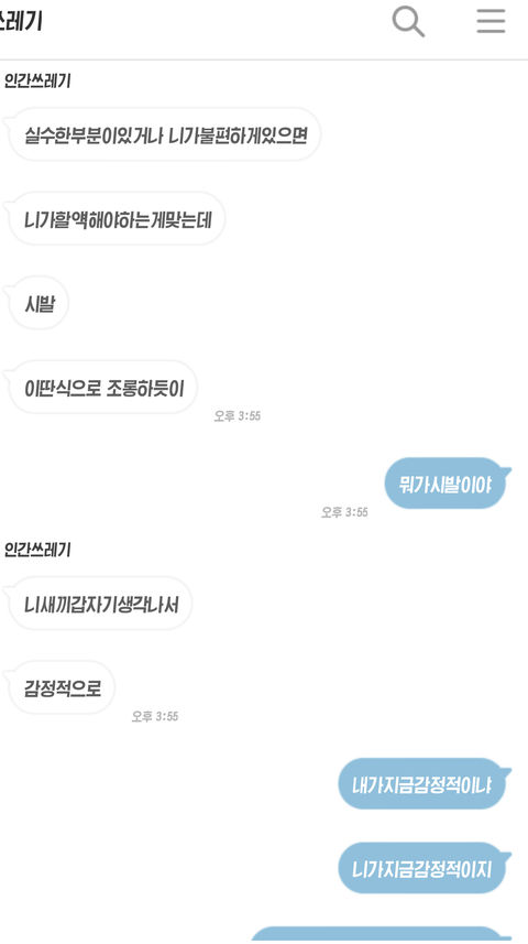 동생이랑 저랑싸우는데 한다는소리고 백슈같은새끼라느니 ...