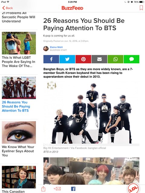 저번에 BUZZFEE*라고 유명한 해외 사이트에 방탄 올라왔다고 말했던 이삐인데