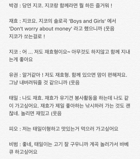 지코랑 재효 커플당첨. 마이 최애 피오는 선택받지못한남자...나랑가서 저 보들보들한 생얼 보여주면 안되겠니? 흑