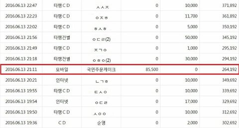 캐럿분들께서 입금 해 주신 모든 내역과, 서포트 물품인 화환 두 개, 케이크 한 개, 메세지북 한 권을 결제 한 내역입니다.