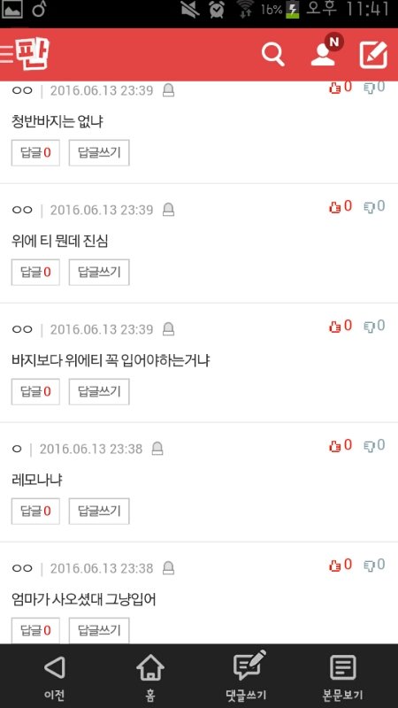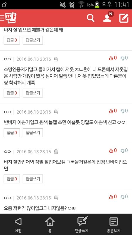바로 몇분후 바지랑 옷 어떠냐고 물어본 글에 댓글