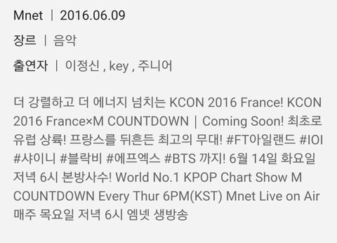 내일 엠넷에서 오후 6시에 시작해 !