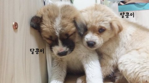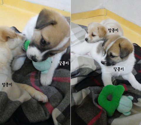 고물상에사는 어미견에게서 태어난 알콩이와 달콩이입니다.