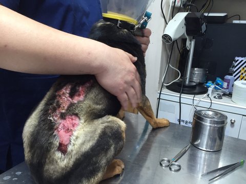 다만 반문이는 미용을 한후 보니 불에 그을린곳이 딱딱해져있고 염증이 차서