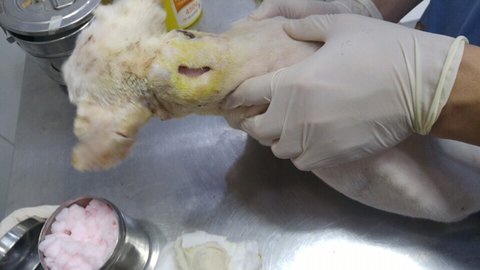 그부위를 밀고보니 염증이 꽤 심하네요.