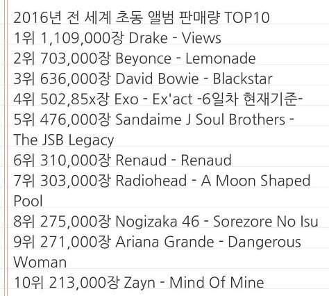 전세계 초동 4위 엑소클라스
