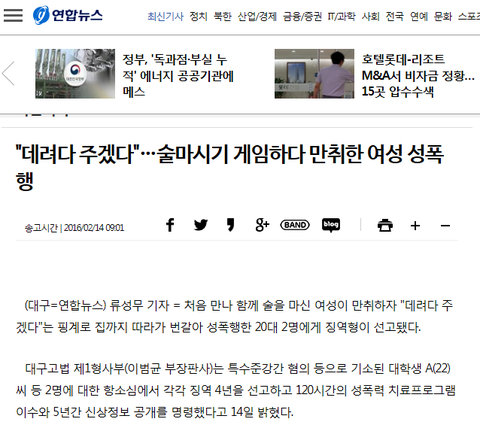 2016년 2월에 대구에서 일어난 비슷한 윤간도 있네요 그건 처음 본 여자 집에서 20대 남자 2명이 한건데..