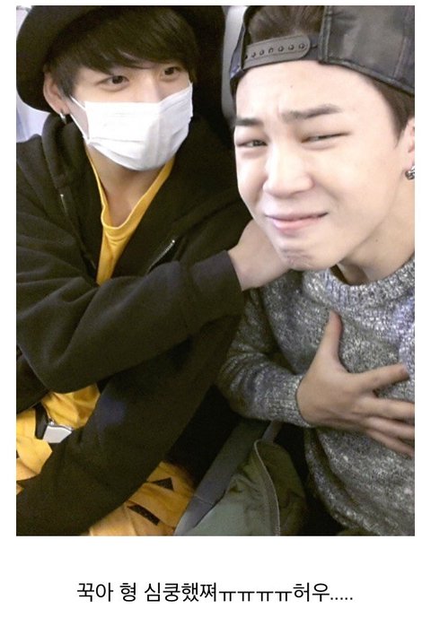 서울로 올라와서 가족들과 떨어져 연습생으로써 하루하루 힘들게 보내는 지민이로썬 고향도 같고 지민이 동생분이랑 동갑인 정국이가 정이갔을지도. 막내 정국이가 무뚝뚝해보여도 지민이가 힘들때면 애교같지않은 애교로 풀어준다고 한 것처럼 정국이는 지민이에게 친동생 같은 느낌을 주었을거 같아ㅠㅠ추측이지만 안쓰럽기도하고 서로 힘이 되는거 같아서 다행이다