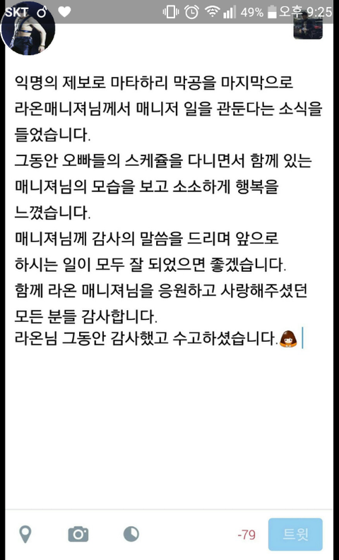 이거 진짠가ㅠㅠㅠ 진짜면 수고하셨어요 그동안ㅠㅠ