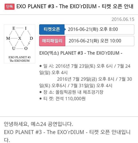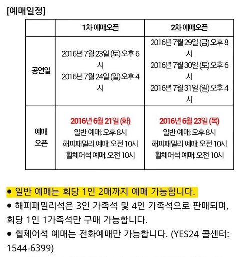 티켓오픈 6/21 오후 8시 (해패석 오전 10시)