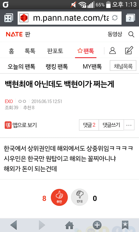 스밍얘기로 분위기 전환할랬더니 저 넌씨눈 백현팬