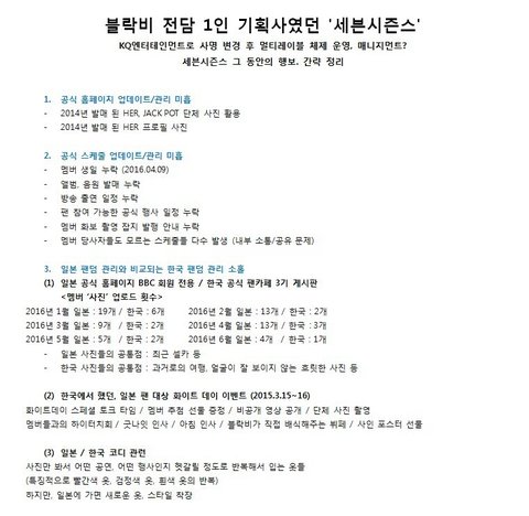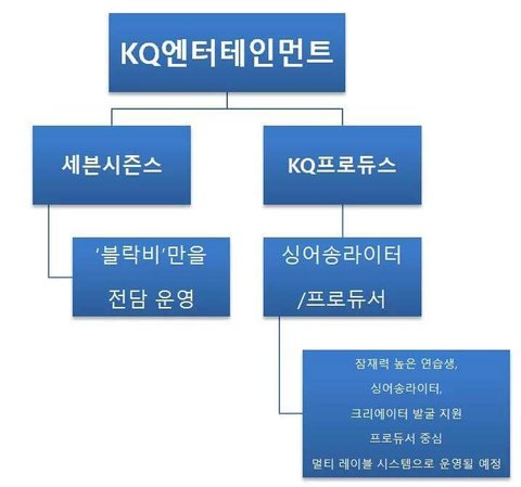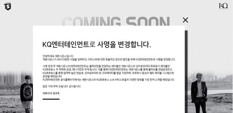 세븐시즌스에서 'KQ엔터테인먼트'로 사명 변경. 이게 과연 무슨뜻일까? 저녁에 븨앱으로 애들 만날생각에 들떠있었는데 기분이 묘해지네 ㅠ
