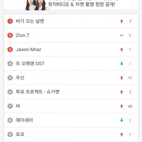 비만 오면 차트 진입ㅋㅋㅋㅋ
