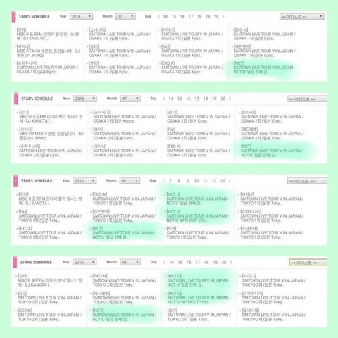 이거 7.8월 일본 SM 콘서트 일정 나와있는건데