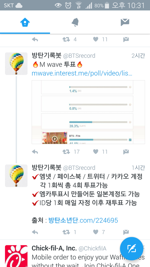 짹에서 방탄기2록4봇 찾아가서 링크 타고가서 투표 한번씩만 해줘
