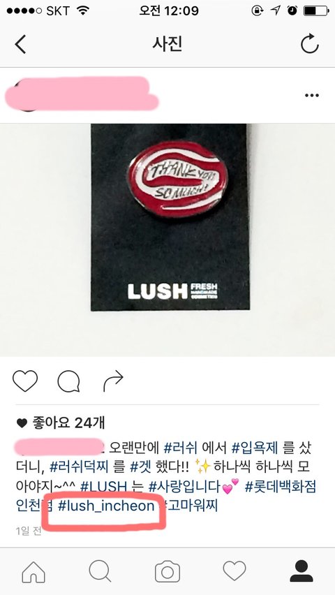어제 아침 11시경 '러O'에서 주는 '홍보해O'라는 뱃지를 받기위해 찾아가서 '더 컴포O'라는 버블바 를 구매하였는데, 남자 직원분이 그걸 받기 위해서 팔로우를 해야한다길래 팔로우만 하실줄 알았더니 멋대로 남의 게시물에 자기 일하고 있는 직장을 해시태그 하네요. 전 그때까지만 해도 몰랐었는데 저녁에 보니 적혀있더라구요. 알게 됬을때 기분도 꿀꿀하고. 제가 좀 예민한걸수도 있지만, 기분이 좀 그렇네요.