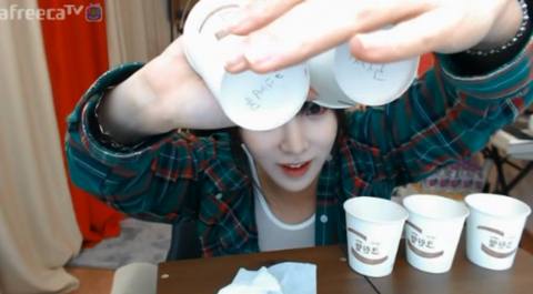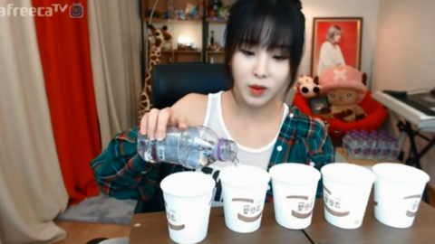 아마도 자기가 BJ 최초로 하는 거 라면서 진행한 생수 블라인드테스트