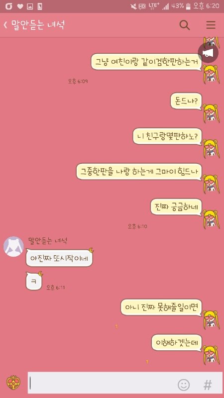 그리곤 피방에서 겜한다고 톡 거의 안함 반나절동안 ㅋㅋ 해봣자 의미 없는말들