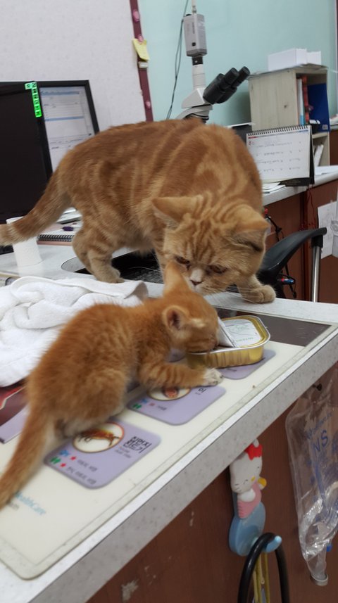 첫날 구조 후 병원에 갔을때 하두 못먹어서 탈수증상이 생긴 거라 하시며 간식을 하나 주자 마자 코 박고 먹더라구요 ㅎ 그날 저 쪼매난게 반 정도 먹은거 같아요ㅎ